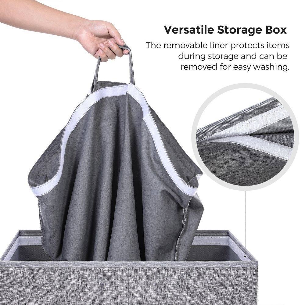 A good hamper plays an important role when it comes to laundering. Keeping your expectations in mind, we've put considerate thoughts into this Grey Fabric MDF 2-Compartmant Laundry Hamper Basket with Removeable Cotton Bag. Lid attached by magnetic strip and hook-and-loop fasteners, designed with extra width to keep in shape, is extremely easy and convenient to use. Removable and washable liner bag made of pure cotton, long-term durability is ensured, and you don't need to move the hamper at all. Gray fabric cover made of breathable linen material, easily matches all kinds of home decor. Extra MDF base board makes the hamper more durable and sturdier; you can also remove the base board and fold the hamper flat when not in use. Featuring stylish appearance and selected material, this laundry hamper is a great addition to any bedroom, laundry room or bathroom. Take it home and get organized!