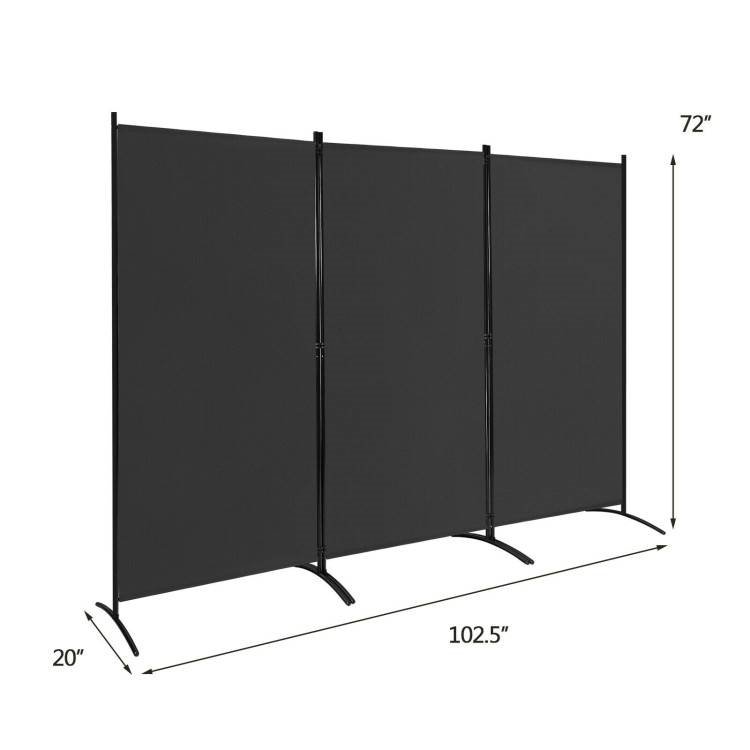 Home > 6-Ft Black 3-Panel Room Divider Screen with Steel Base and Heavy Duty Hinges